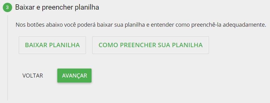 2.3 Aqui você poderá baixar e aprender como preencher o modelo de planilha selecionado anteriormente.