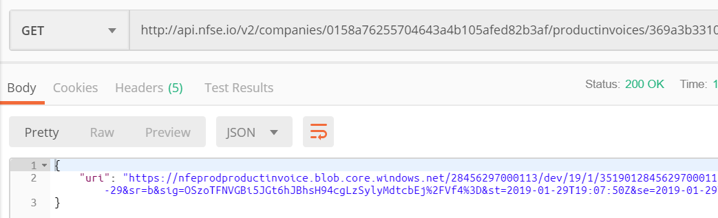 Observação: A consulta de XML e consulta de PDF geram uma nova url temporária (válida por 15 minutos) e necessitará uma nova requisição para receber o dado válido.