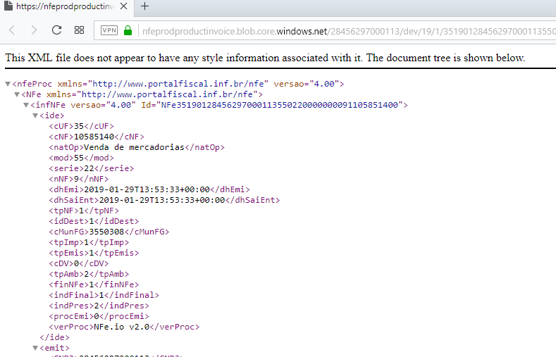2. Será retornado uma URL temporária para consulta do xml.