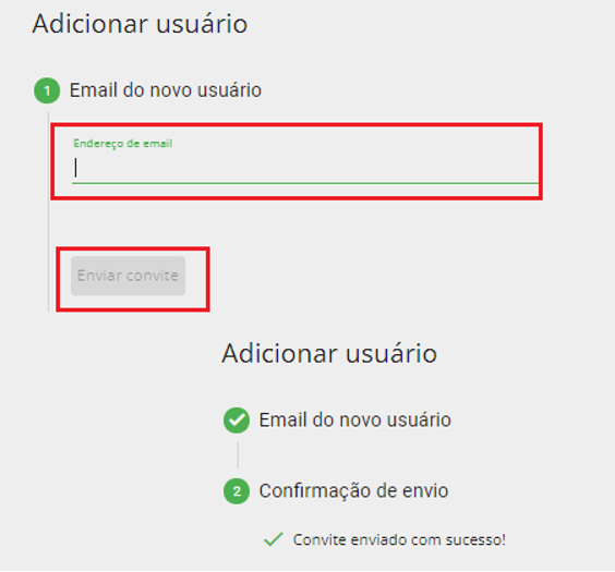 Preencha o e-mail do novo usuário e clique em enviar convite.